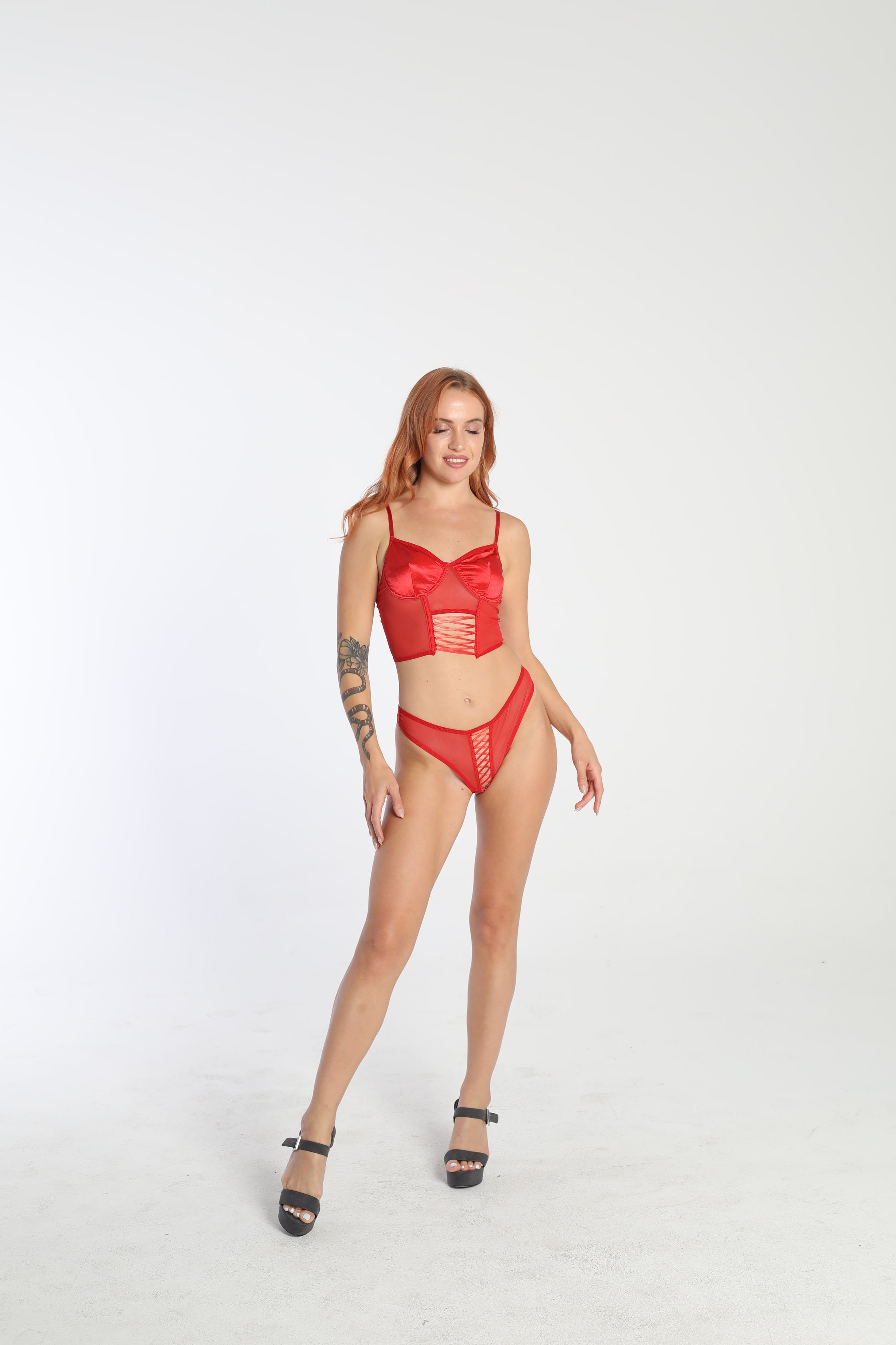 ZİNCİR DETAYLI SATEN BUSTİYER SET
