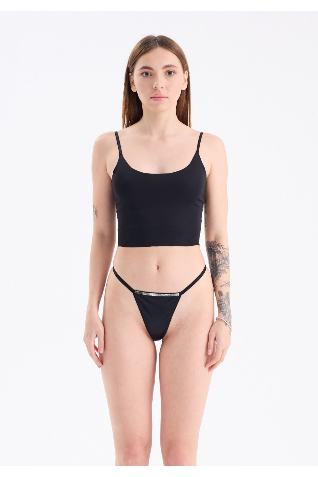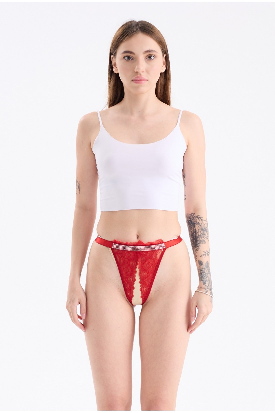 Fırfır ve Taş Detaylı Dantelli String Külot